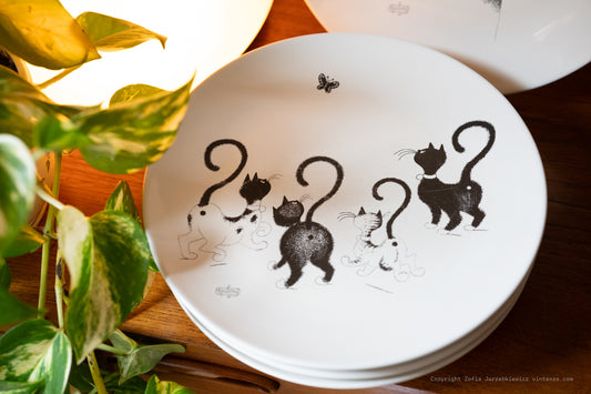 5 Vintage Decorative Cat Illustration Ceramic Albert Dubout Dinner Plates