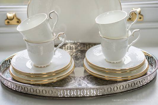 Royal Albert For All Seasons Daybreak Pattern 4 Trio Sets and Cake Plate