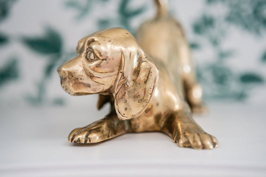 Very Heavy Solid Brass Puppy Figure / Door Stopper