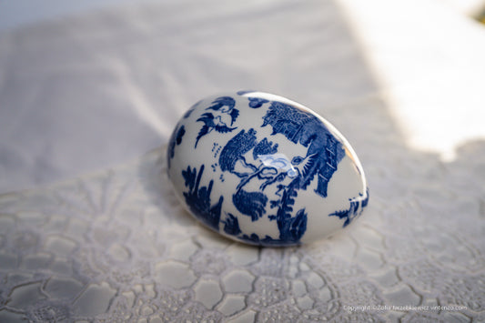 Rare John Ffrench Aklow Studio Pottery Willow Pattern Egg