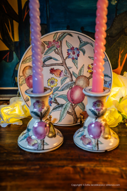 Handmade Chinese Pottery 2 Candleholders and a Plate