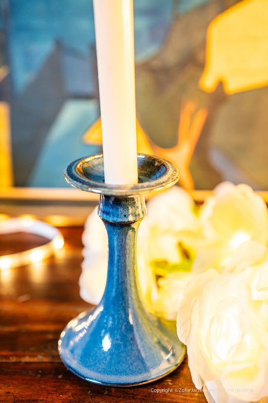 Blue Pottery Candleholder