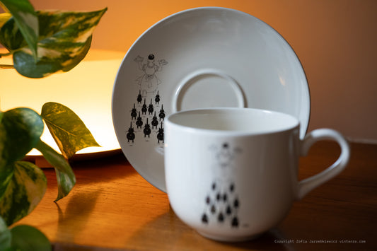 Vintage Decorative Cat Illustration Ceramic Albert Dubout Big Cup and a Saucer
