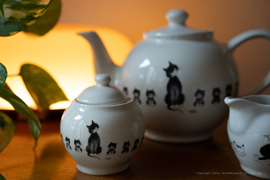 Dubout Cats Teapot, Creamer and Sugar bowl
