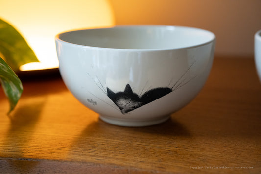 Vintage Decorative Cat Illustration Ceramic Albert Dubout Two Bowls