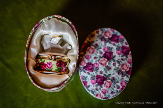Vintage Porcelain Egg Shaped Flower Trinket Box
