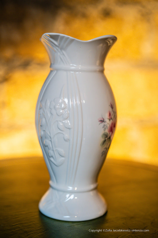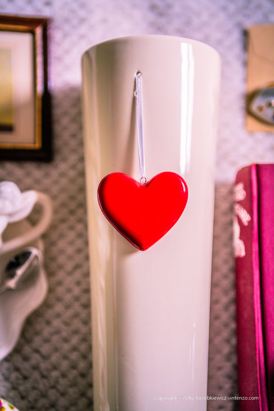 Tall Ceramic Cream Vase with a Red Ceramic Love Heart