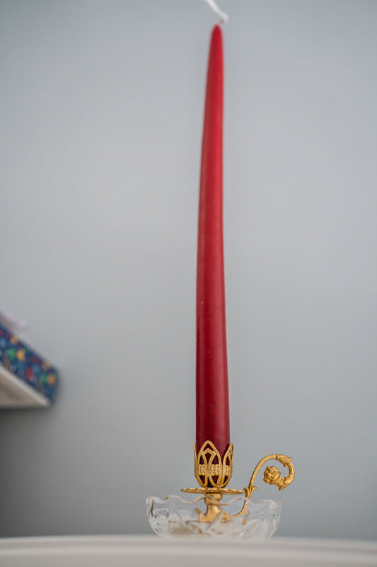 Vintage Irish Crystal Star Cut 22K Gold Finishing Gilt Filigree Candle Carrying Holder