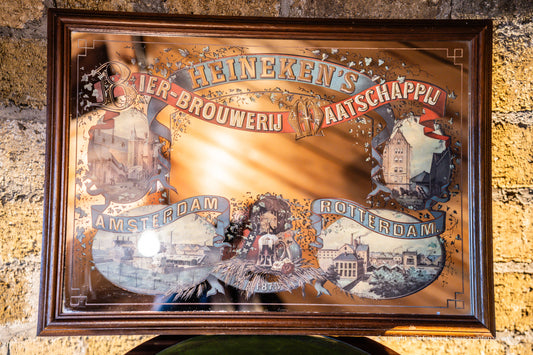 Vintage Heineken Brewers Pub Advertising Mirror -Amsterdam Rotterdam