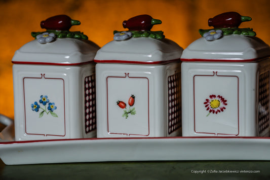 Villeroy & Boch Set of 3 Petite Fleur Jam Jars on a Tray