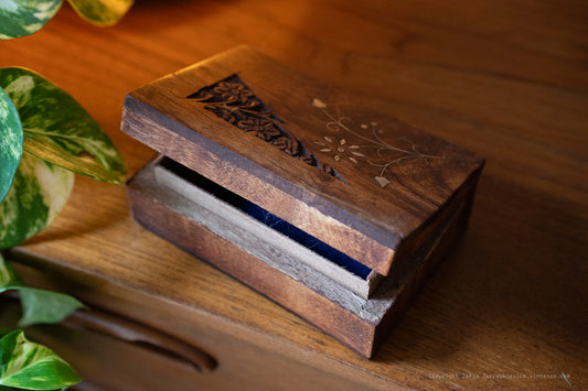 Vintage Wooden Box with Brass Flower Detail
