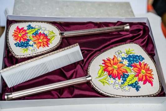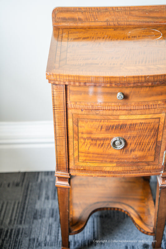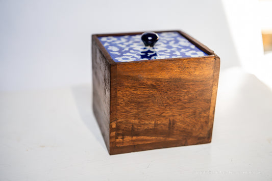 Vintage Wooden Box with Ceramic Blue Pattern Lid