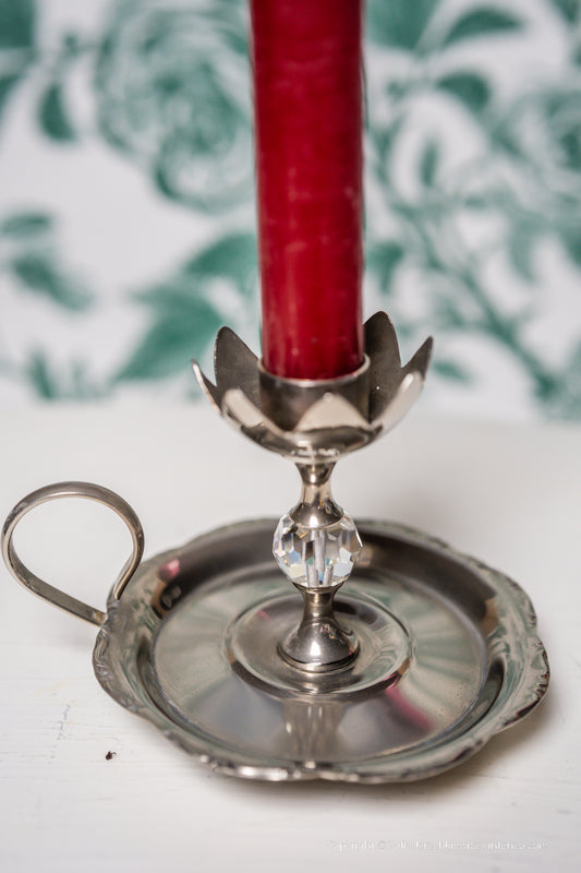 Vintage EP Brass Chamber Candle Holder with Crystal Centerpiece