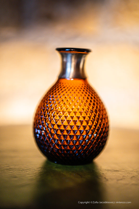 Vintage Empoli Glass Amber Italian Diamond Small Vase With Brass Neck
