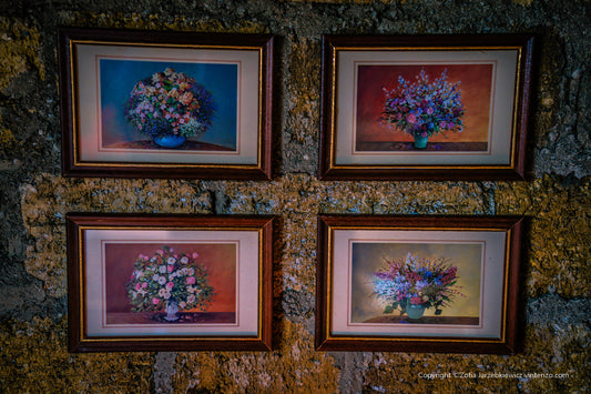 Vintage Print of Flowers in a Wooden Frame Set of 4