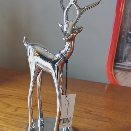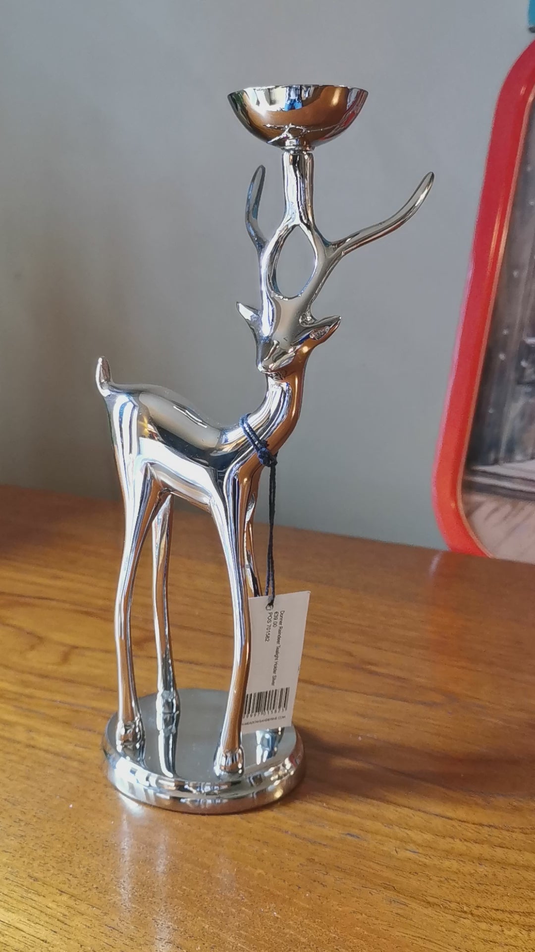 Charming Donner Reindeer tealight holder in silver finish from Meadows & Byrne. Perfect for adding a festive glow to your holiday décor, this whimsical piece brings seasonal cheer to mantels, tables, or windowsills.