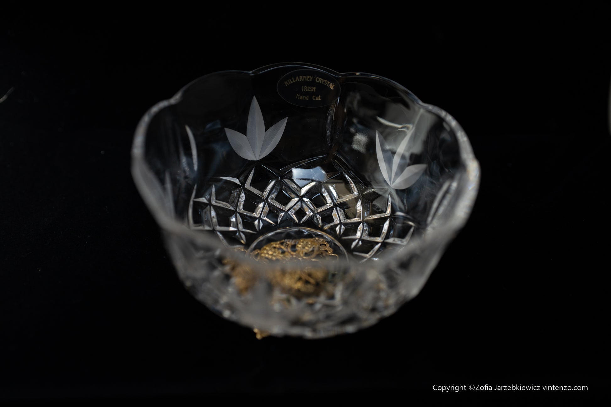 This Killarney Crystal Gold Plated Small Bowl combines classic craftsmanship with refined elegance. Featuring brilliant crystal detailing and a radiant gold-plated footer, it's a stunning accent piece for any table or display.