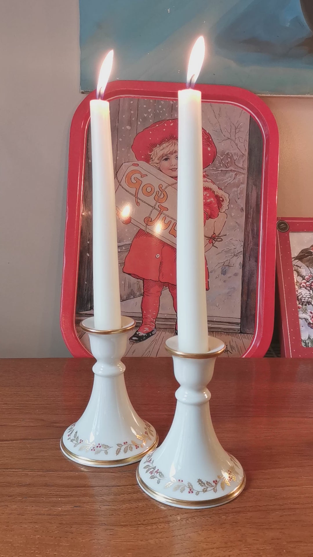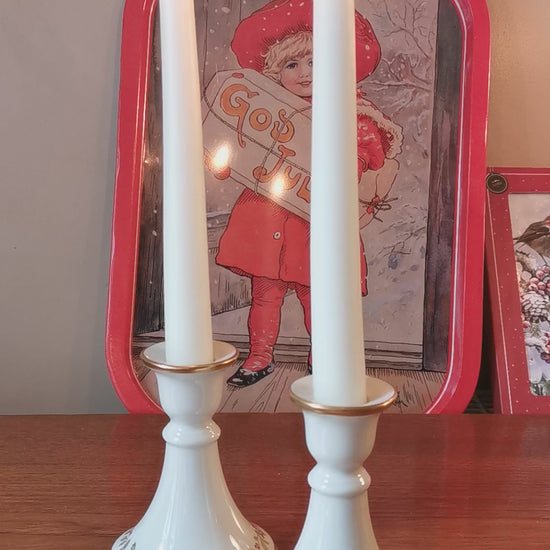 Elegant Lenox Eternal Christmas candle holders, crafted in fine ivory porcelain with gold trim. A timeless design that brings warmth and sophistication to holiday tablescapes, perfect for both festive entertaining and year-round display.