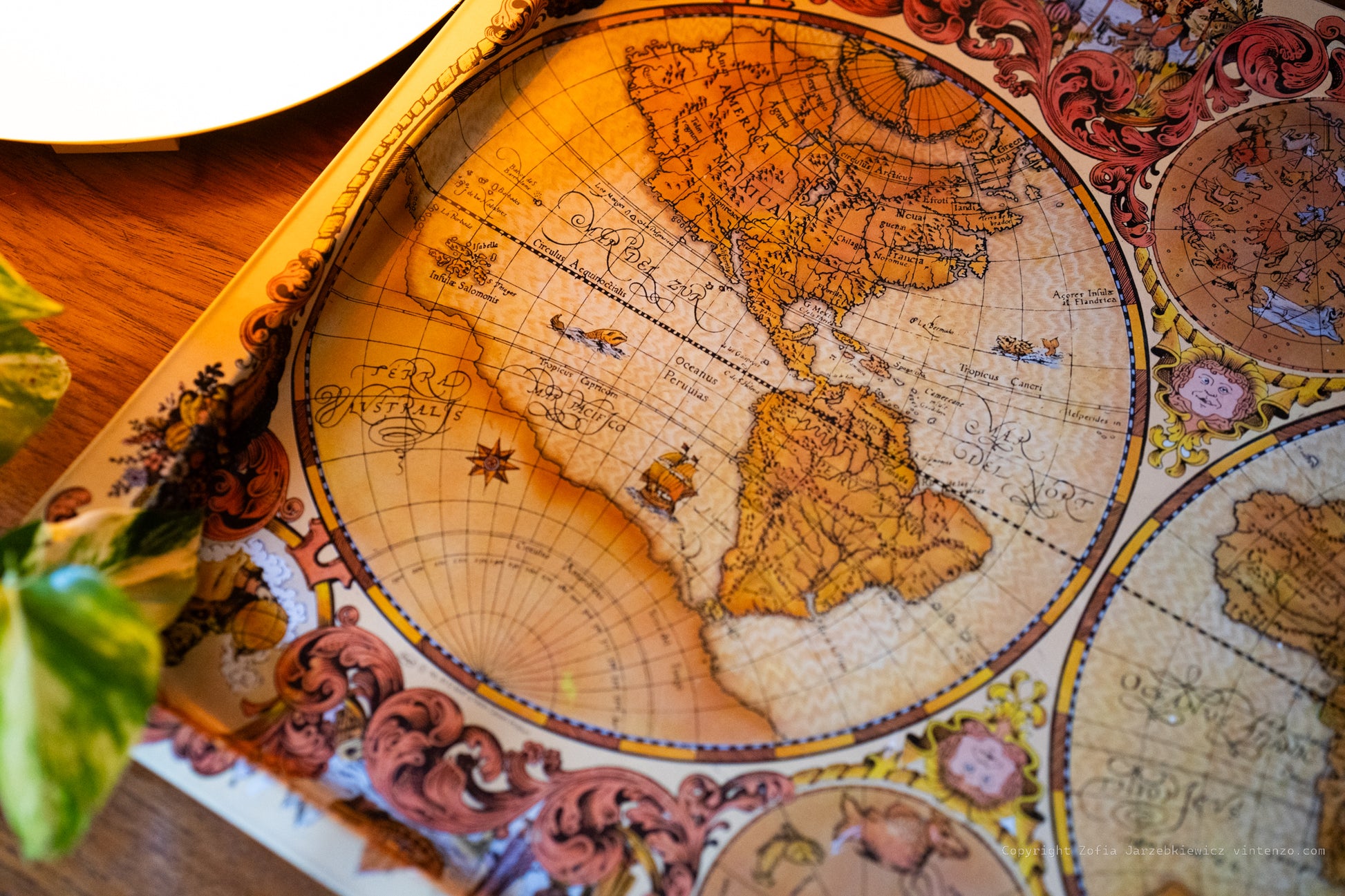 Serve in style with this enchanting Old World map tray, featuring beautifully detailed vintage-style cartography and subtle astrological elements. The artwork evokes a sense of history and curiosity, making it a stunning display piece as well as a functional serving tray. Ideal for entertaining, organizing, or simply decorating a tabletop, it brings an elegant, old-world charm to any home. A lovely blend of practicality and artistry—perfect for those who appreciate unique, story-rich décor.