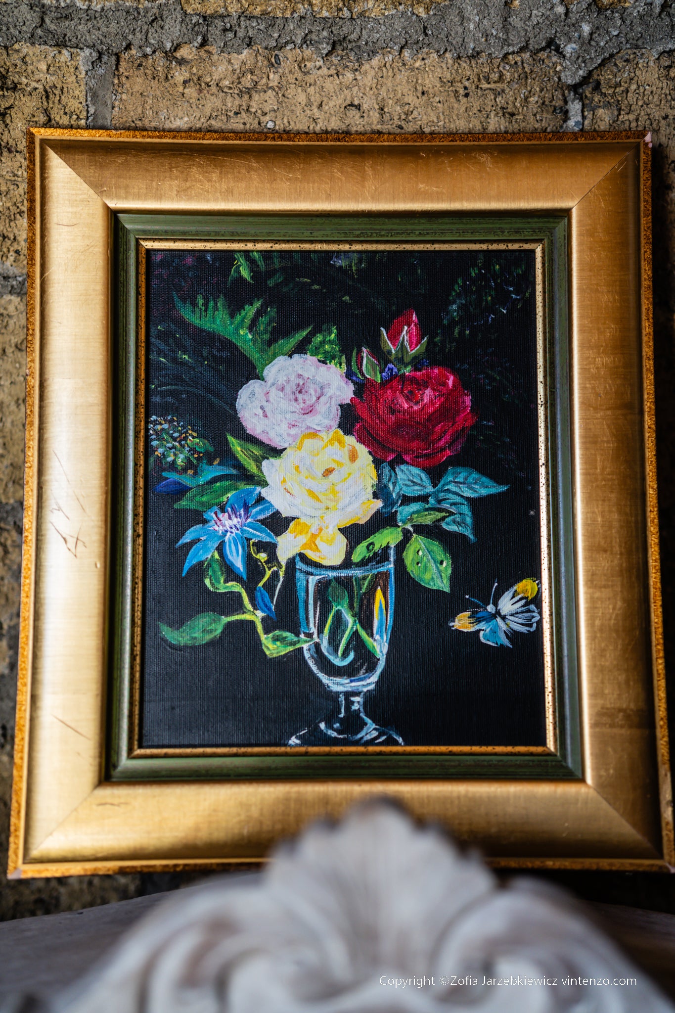 This Roses Original Painting on a black background is a striking and elegant floral study. The deep backdrop enhances the rich, vivid hues of the roses, creating a dramatic contrast that highlights their delicate beauty. Perfect for adding a touch of sophistication and romance to any room, this piece is a timeless celebration of nature’s grace.