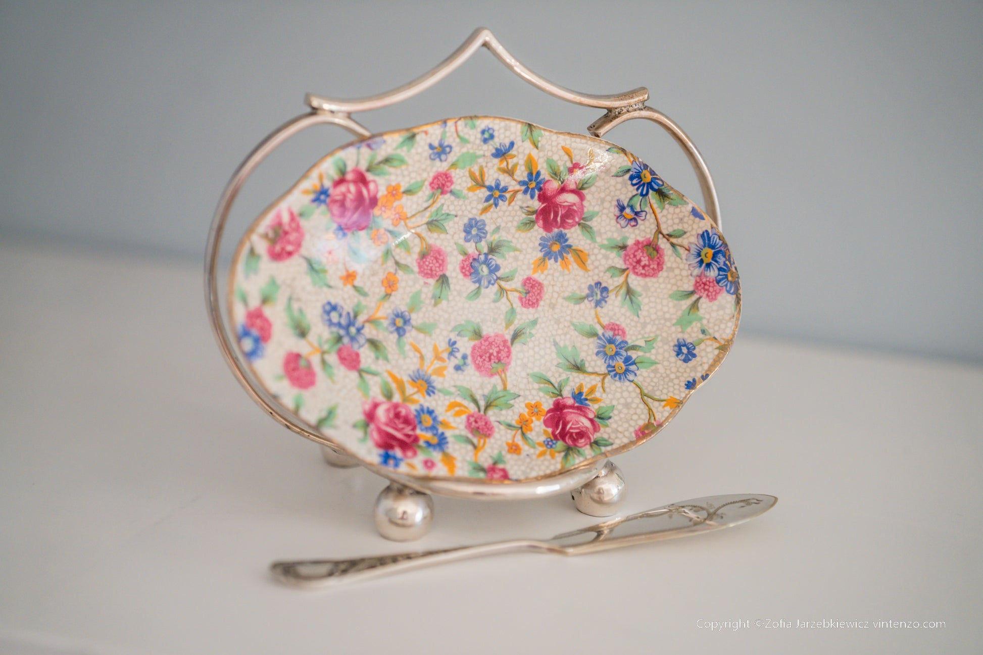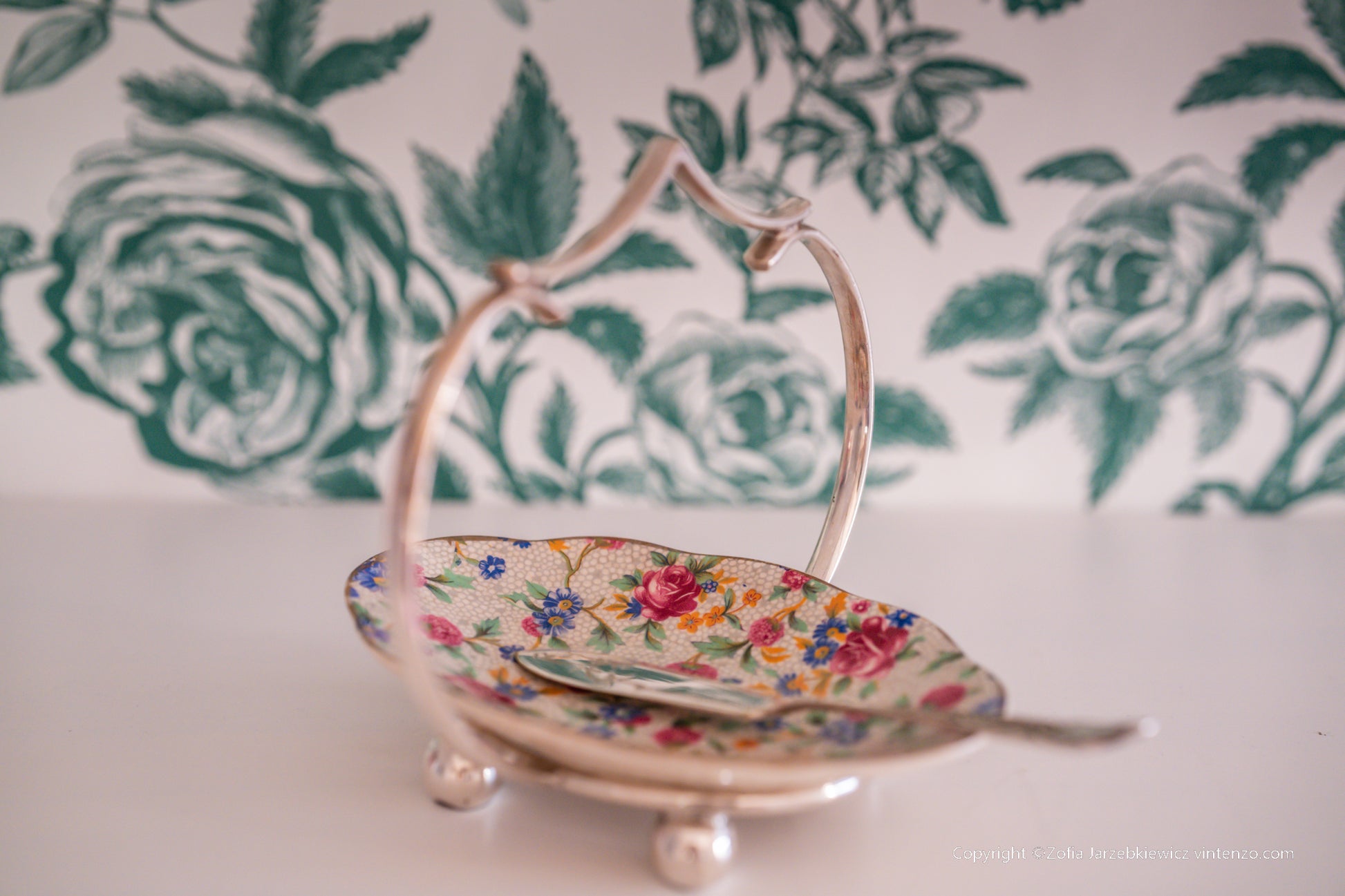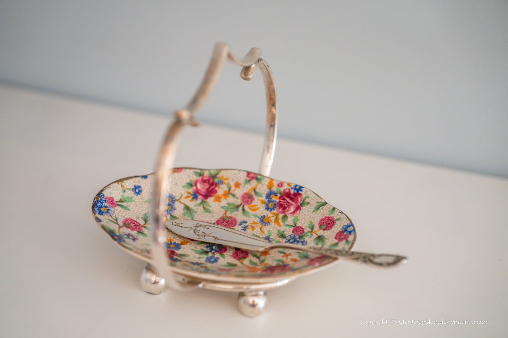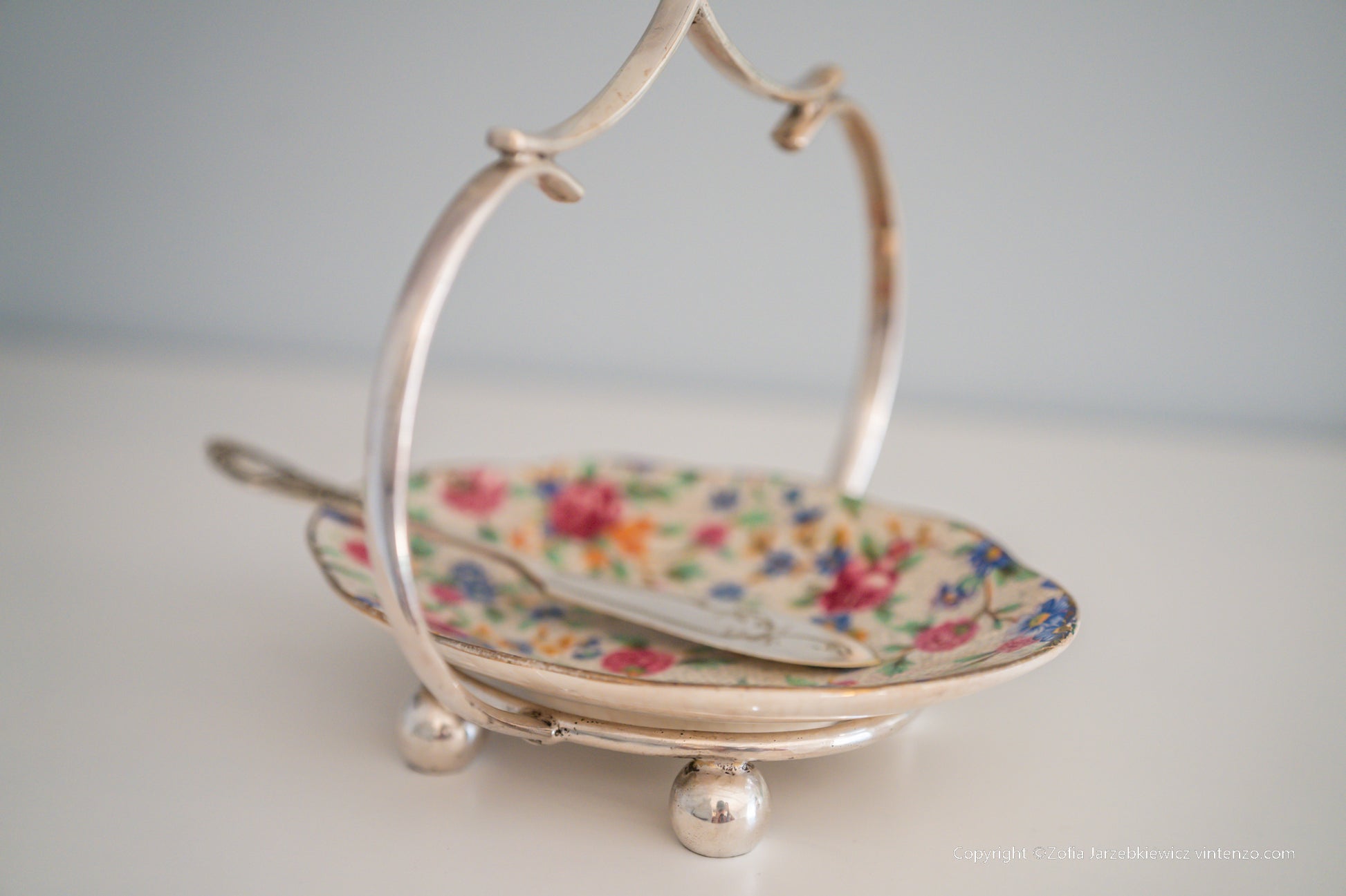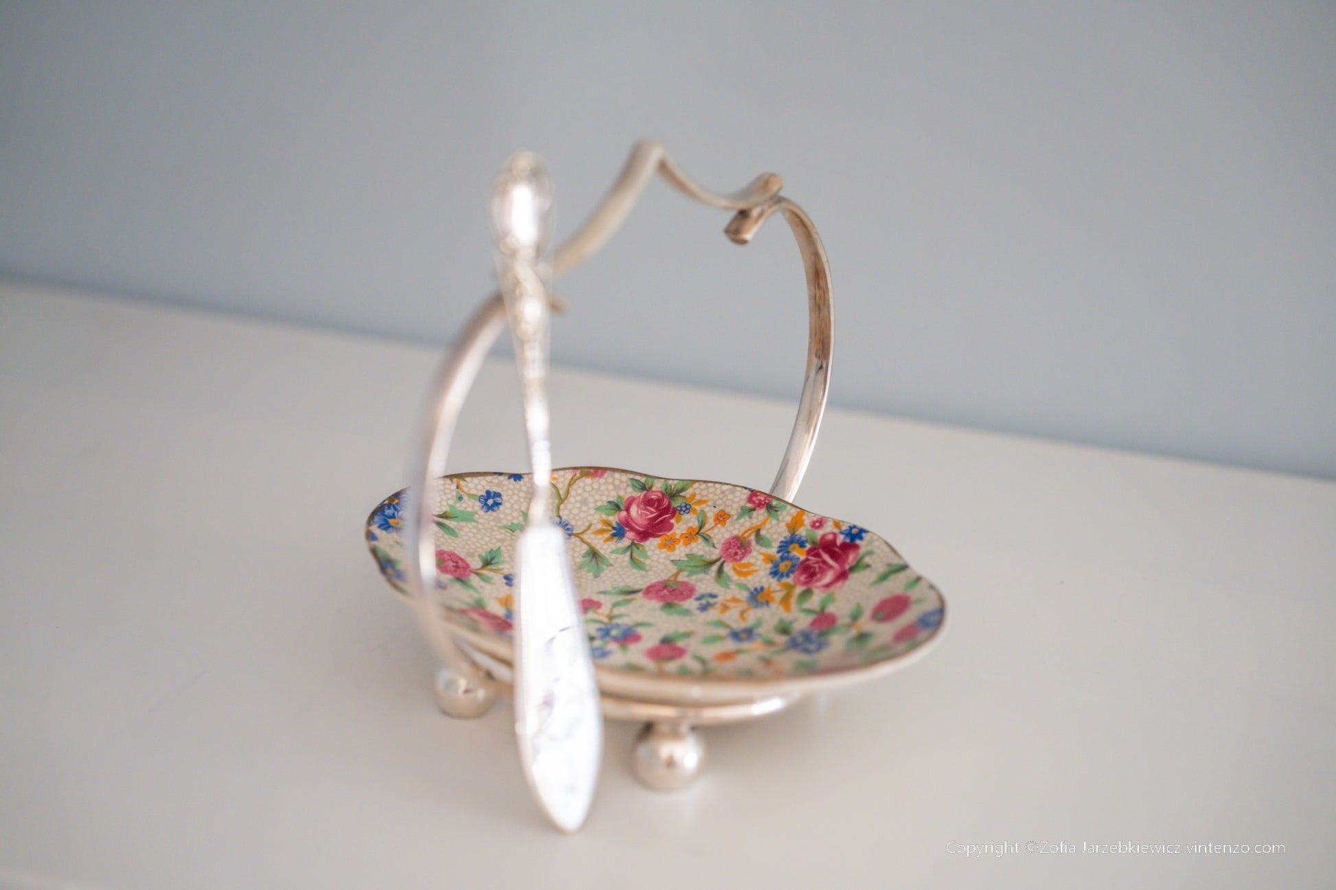 Royal Winton Grimwades Old Cottage Chintz Bowl Dish with Silver Plated Handle and Knife