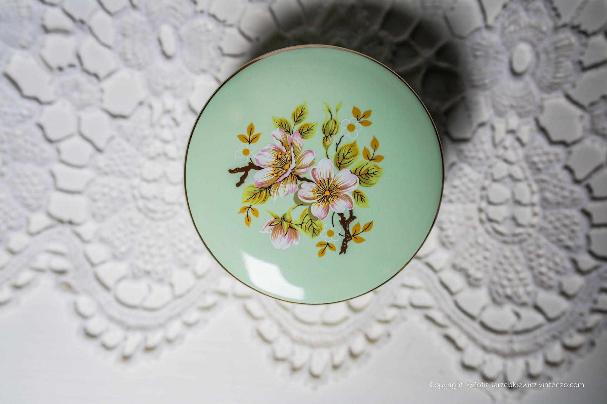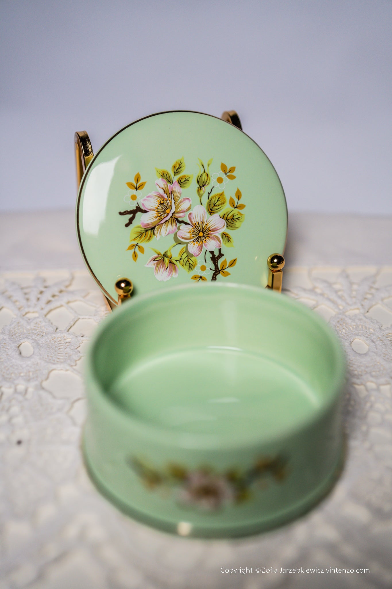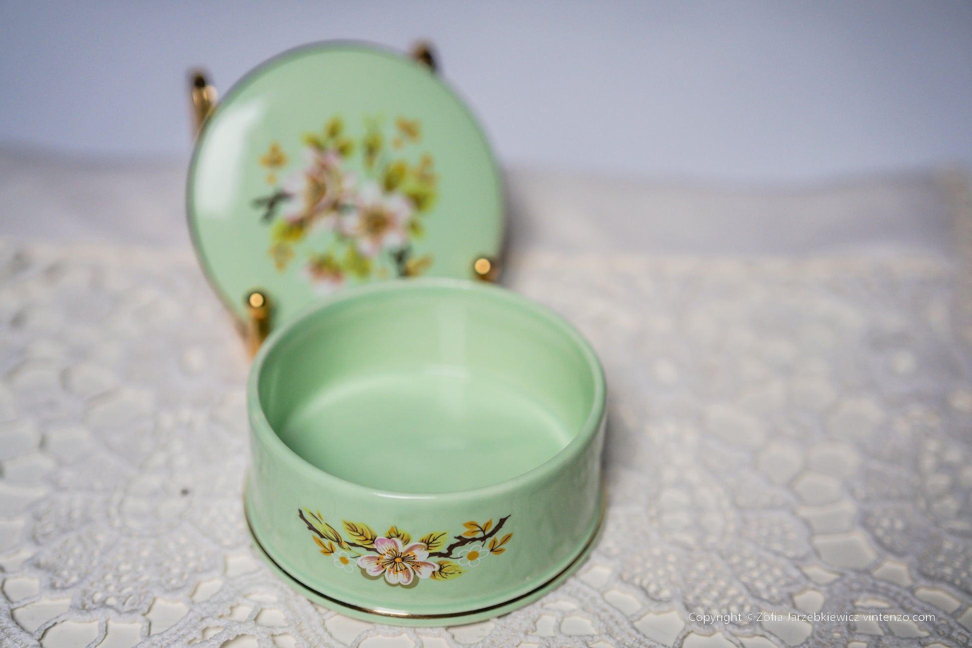 This Sadler Green Floral Trinket Box is a charming vintage piece, perfect for storing jewelry, keepsakes, or small treasures.