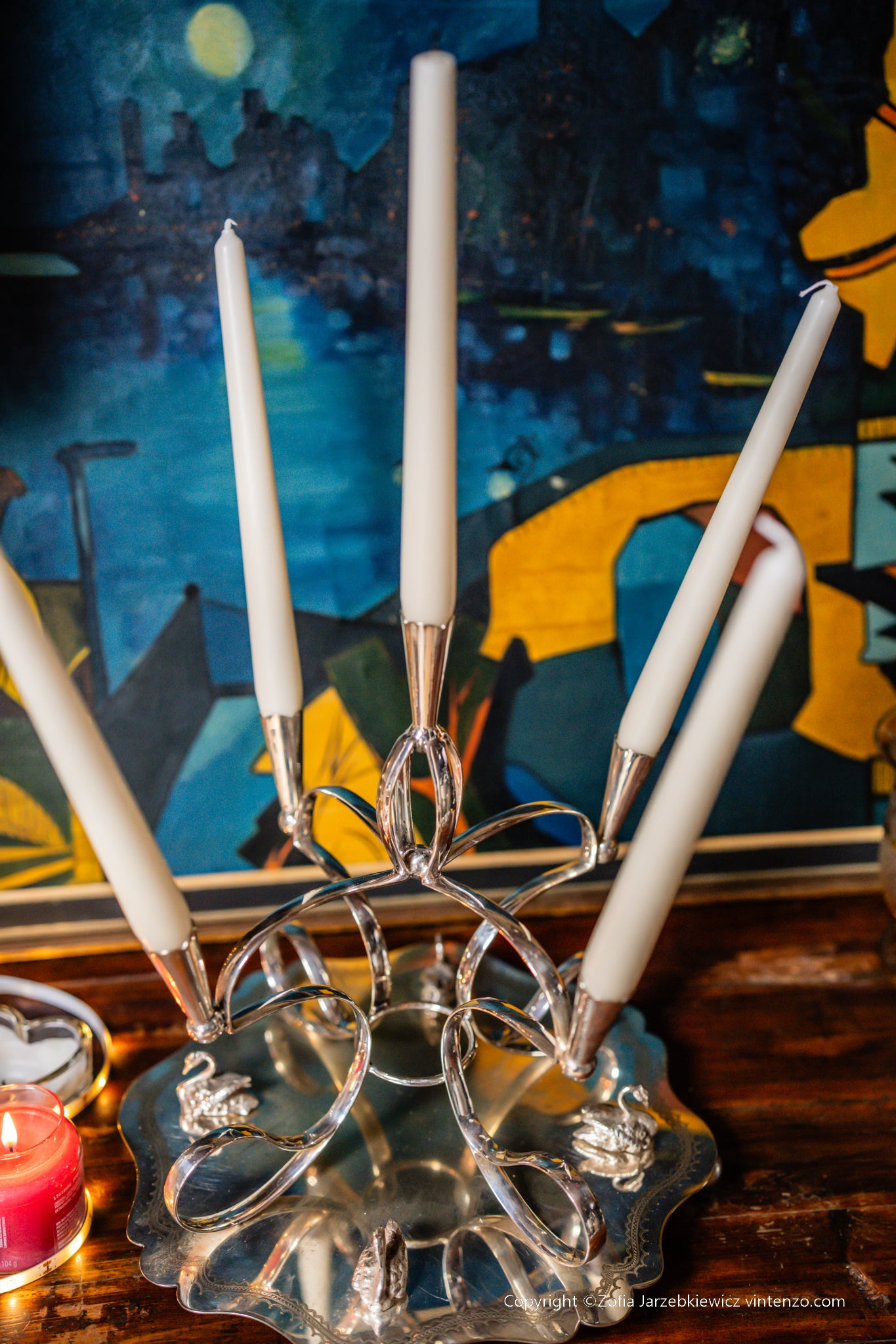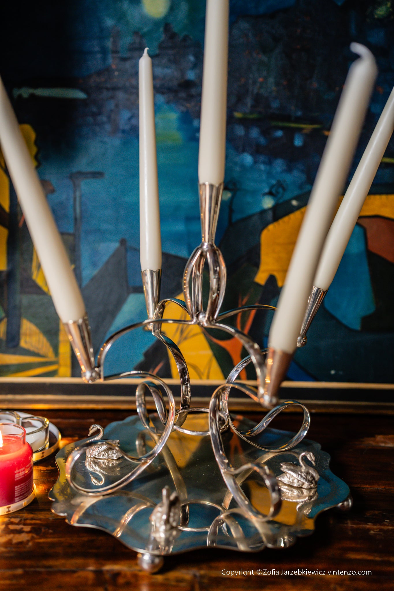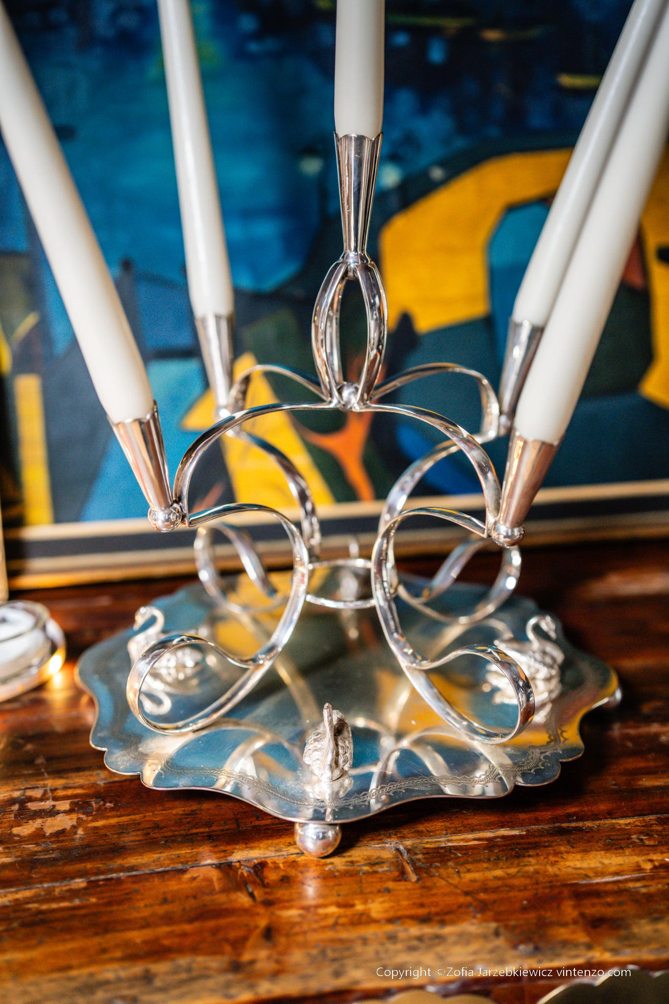 The Sheffield silver‑plated large candleholder with swan motifs is an elegant table centerpiece crafted in traditional Old Sheffield Plate style.
