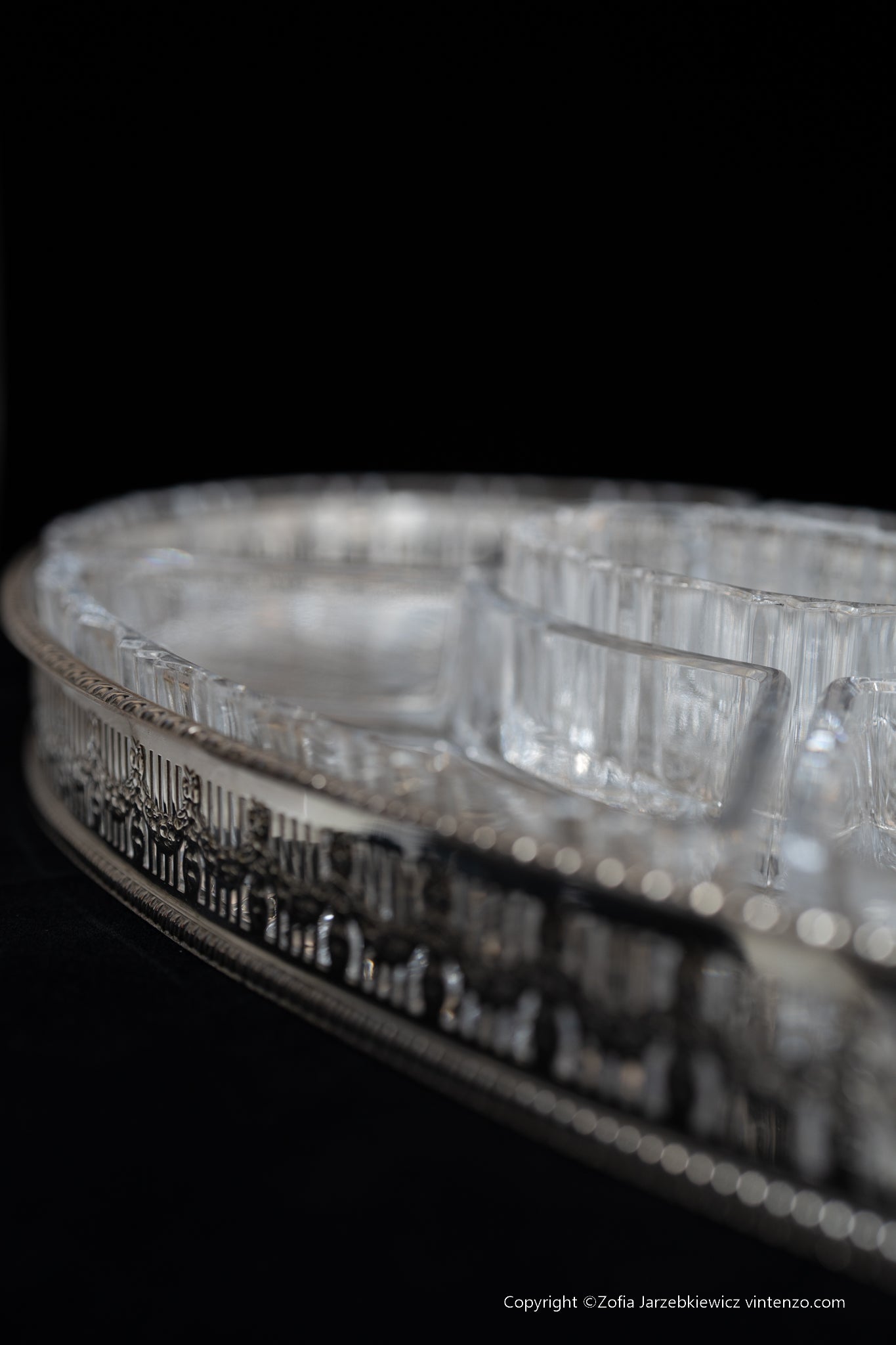 Viners of Sheffield Silver Plated Oval Tray with Crystal Glass Serving Dishes