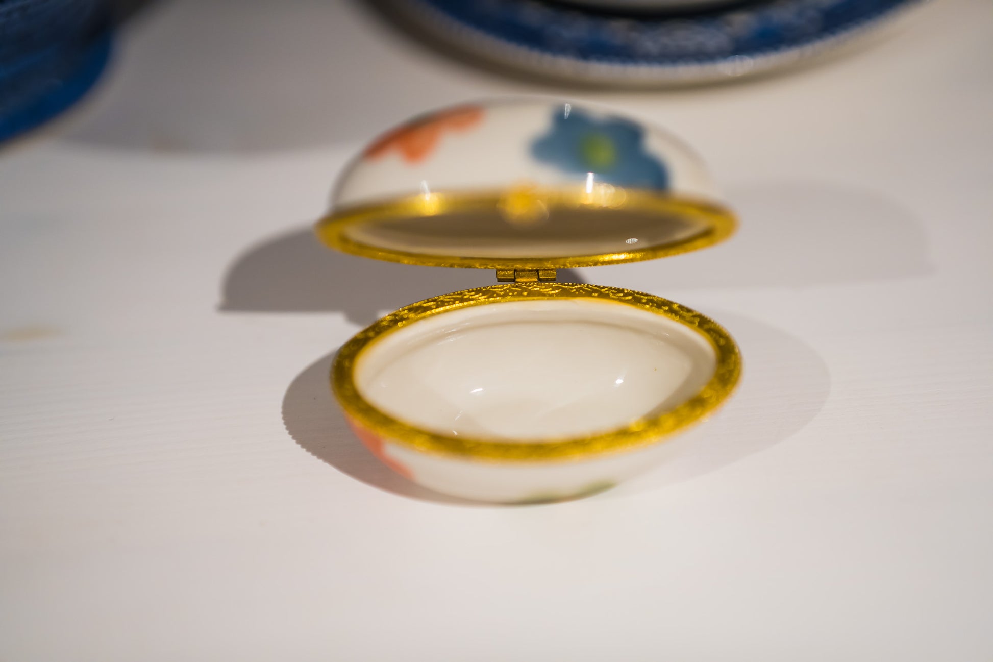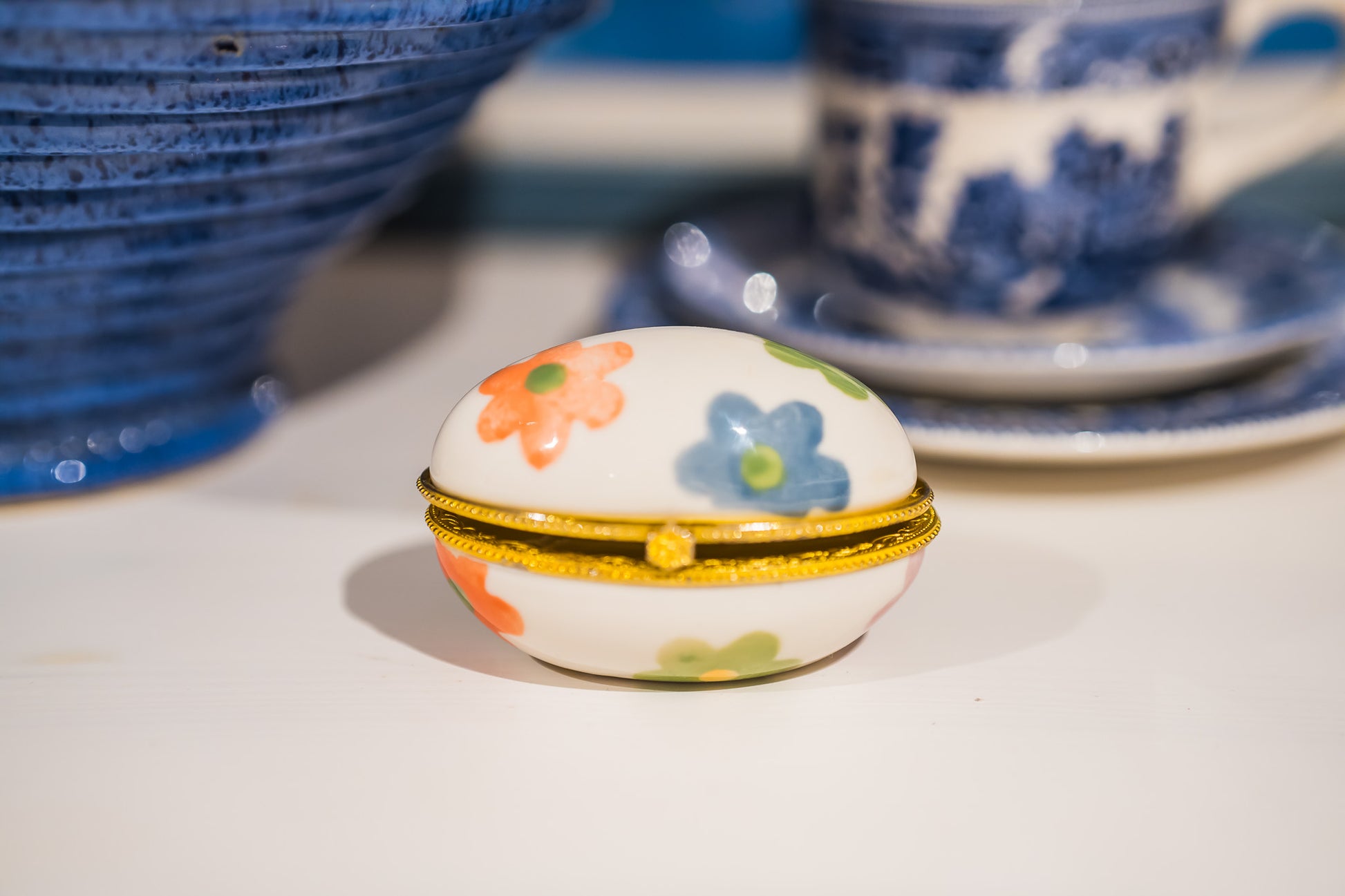 Vintage Porcelain Egg Shaped Flower Trinket Box