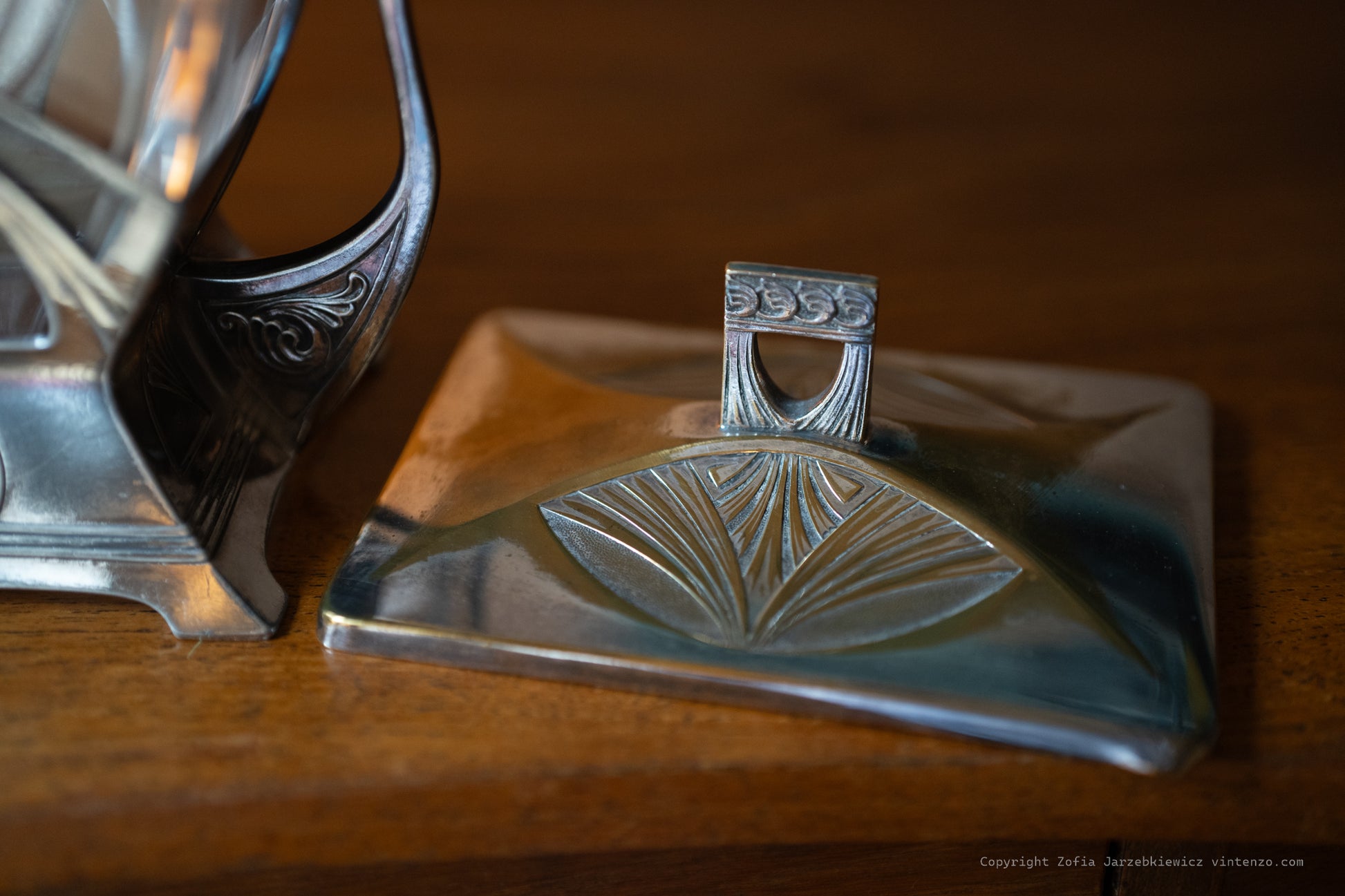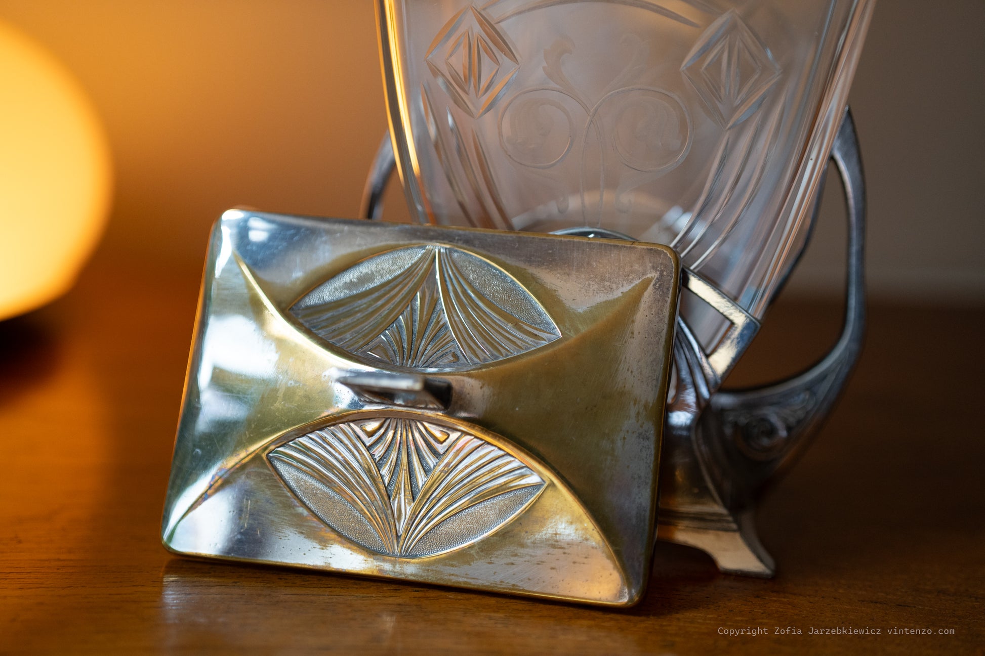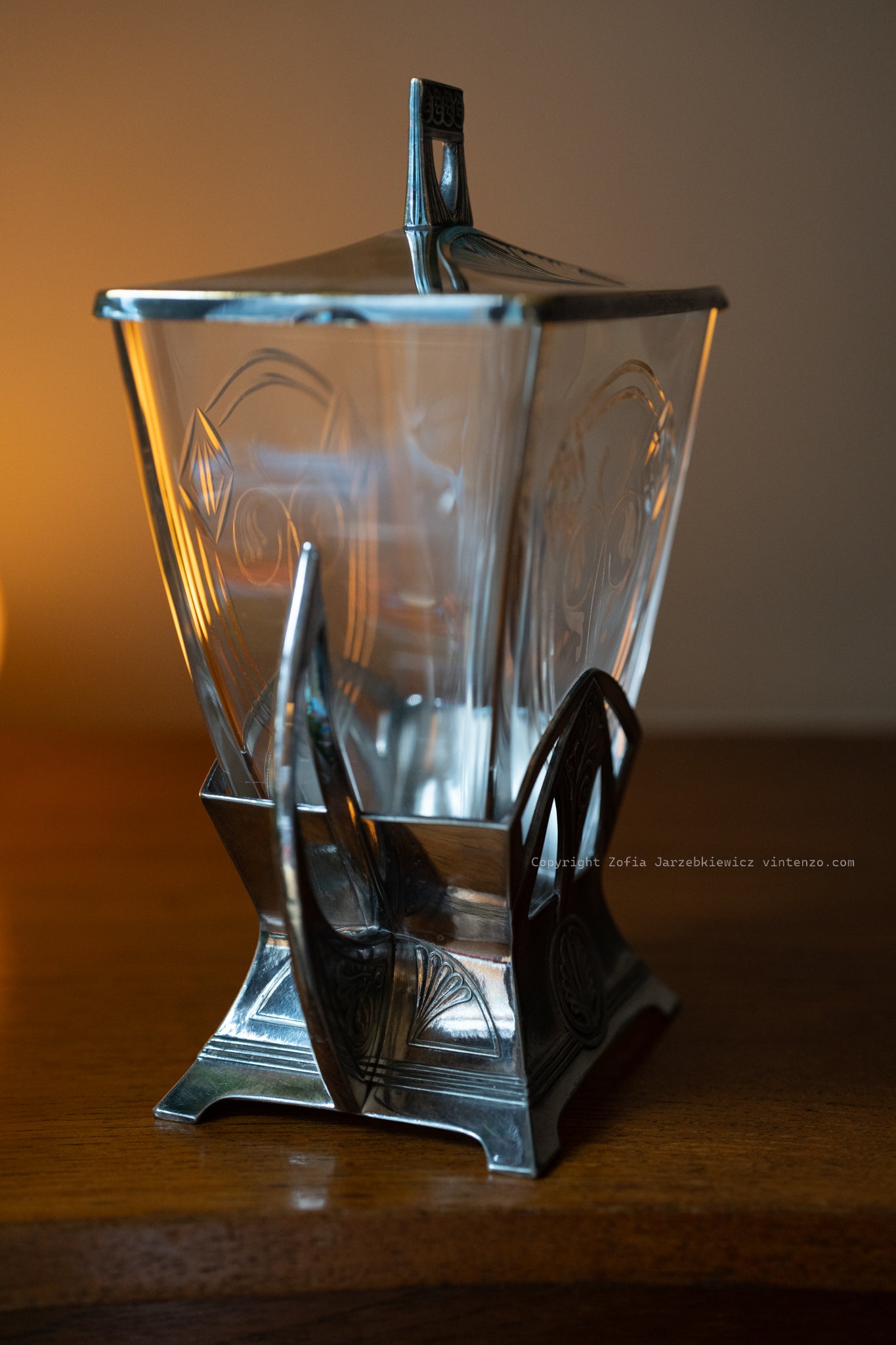 Antique WMF Art Nouveau biscuit barrel, showcasing exquisite craftsmanship with flowing organic lines and intricate detailing typical of the era. A rare and elegant piece, perfect for collectors or as a decorative addition to a vintage-inspired kitchen or dining room.